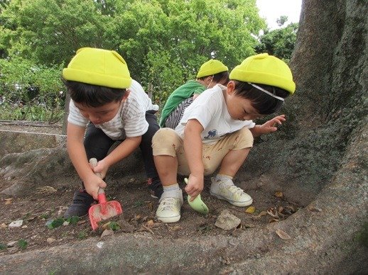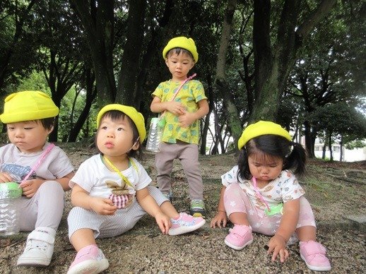 穴掘りしたり、木と同じ模様のカエルさんをみつけたりしたね。来週もおめめがキラキラになることをみつけようね!