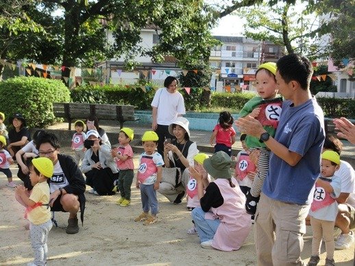 ほんの少しの時間だけれど「なんてかわいいの♡」と、何度口にしたことでしょうか。どの行事も大好きですが、2部に分けることが多いので、こうして違うクラスの保護者の方が集まれて、しかも大好きな外!嬉しくて楽しくてかわいくて、挨拶(らしいこともないですが)する時はウルウル&ワチャワチャしてしまいます。