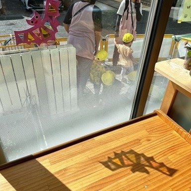 窓に貼ったこうもりがお散歩に行く子どもたちを見送ってくれています。影もきれいで、見るとウキウキしちゃいます。