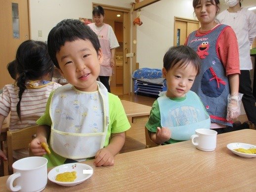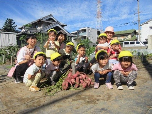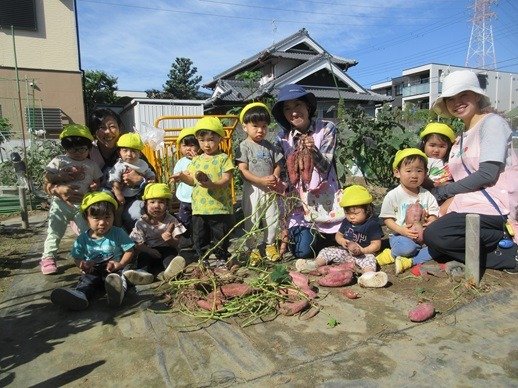 たくさんのお芋は、おうちにも持って帰りました。保育園ではくま組さんが親子クッキングでお芋のおやつを作ります。給食でも食べようね。