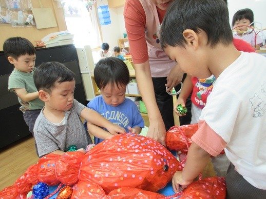 なんだかワクワクしたお顔の子どもたち。先生がおもしろそうなものを持ってきた時のお顔です。かわいい♡