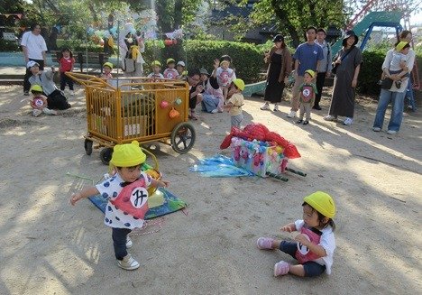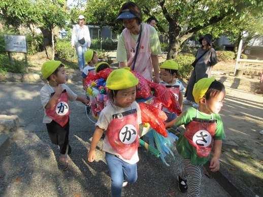 あきまつりのおみこしは10月11日(金)15時~申田公園でおやつを食べたあと、子どもたちのおみこしをします。