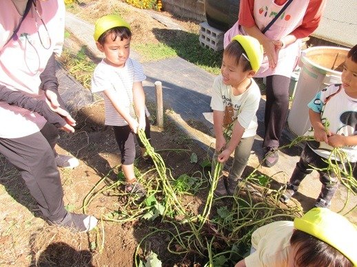 「おいしくなぁれ おおきくなぁれ」子どもたちの魔法はよく効くんですよ。おいしい大根ができるかな。