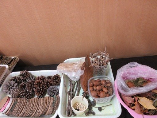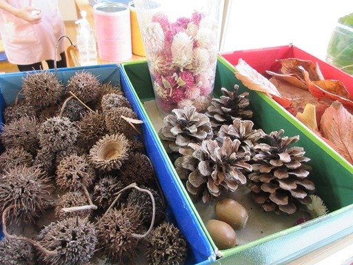 これはほんの1部。大きなどんぐりや赤い実も見つけてきました。