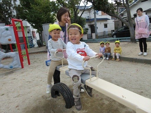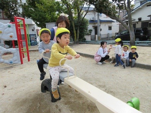 この公園には大きなシーソーがあって、ね、魅力的でしょう?子どもたちの楽しそうな声が聞こえてきそうですね。