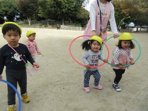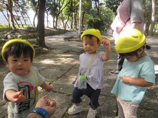 うさぎ・ひよこ組さんは少しずつ遠くの公園まで足を伸ばして、4月には這い這いしていたひよこ組(0歳児)さんも、鳥場公園や中河原公園まで歩いて行けるようになりました。歩くのが楽しくて楽しくてたまらないようです。