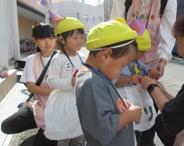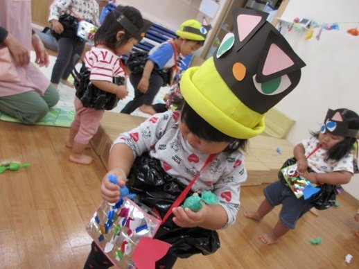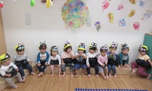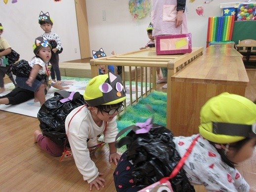 うさぎぐみさんとひよこぐみさんは、くろねこに変身!目や耳は自分で貼り付けたのでそれぞれの個性がでて、かわいらしいネコちゃんができました。