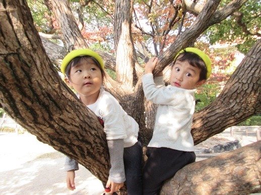 この公園のすべり台の階段はこんな形なので、両手足を巧みに使って登っていきます。みんなチャレンジ精神旺盛です。