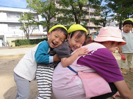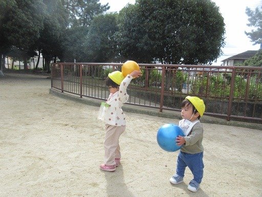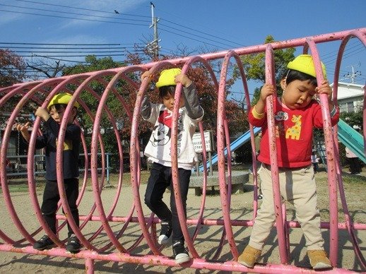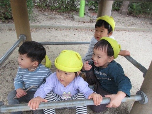 外でもいっぱい遊んだね。お友だちと一緒に電車ごっこ楽しかったね。すべり台シュ~ッ。おもしろくって何度もシュ~とすべったね。先生に見つからないように・・・かくれんぼや追いかけっこでドキドキワクワクしたね。
