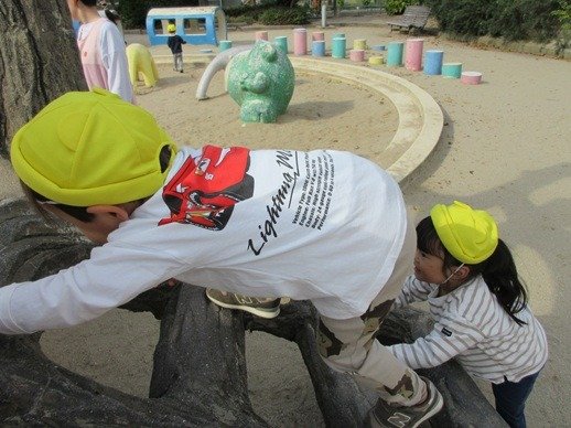 今日は北カリカエ公園まで遠足に行きました。よく歩いたね!いつもとは違う公園にワクワク。