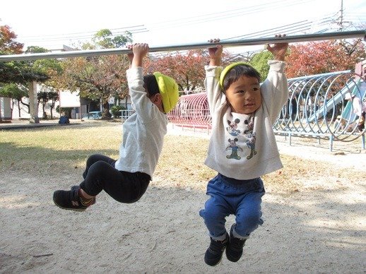 初めての遊具にもチャレンジして、木登りもしちゃいました。鉄棒だってなんだかいつもとはちょっと違って見えたりします。