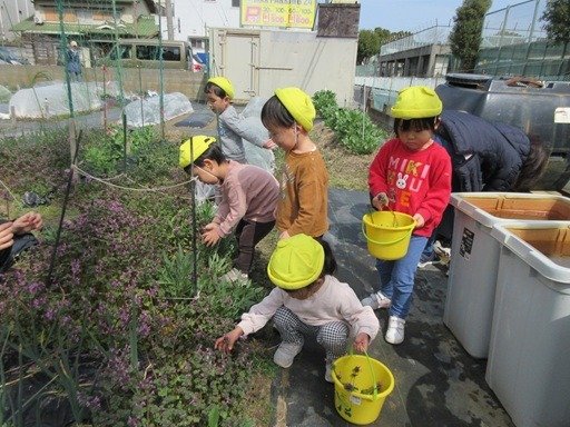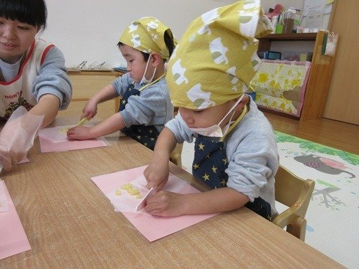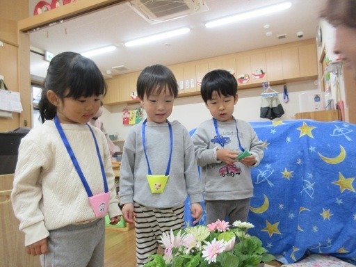 くま組さんは保育園のプランターに植えるお花を買いに行きました。黄色やピンク、白色と、かわいいガーベラの花を選んでくれて、玄関先にも春がやってきたようでウキウキします。