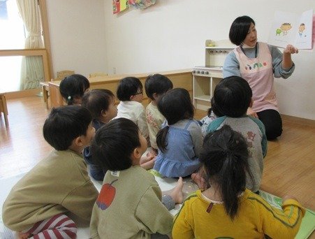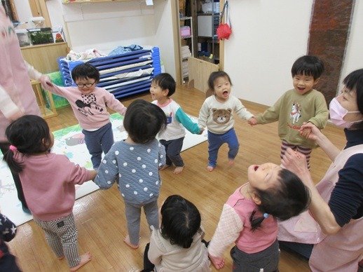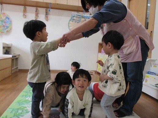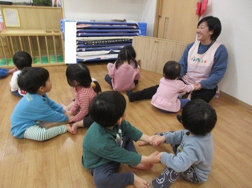 子どもたちが大好きなわらべ歌で、名前を呼ばれたら真ん中に座っているお友だちが交代します。