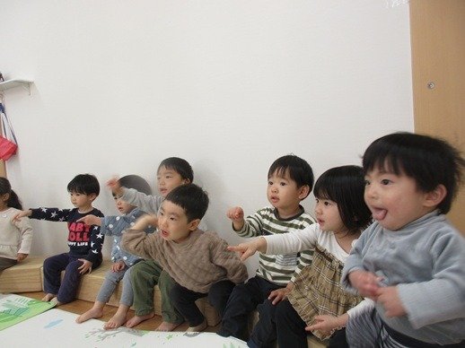 うさぎ組さんもルールがよく分かっていて大きな声でお友だちの名前を呼んでいます。