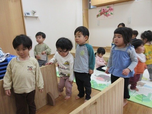 くま組さんは「うさぎ・ひよこ組さんがお部屋に慣れるための練習やねんな?」とよく分かっていますね。