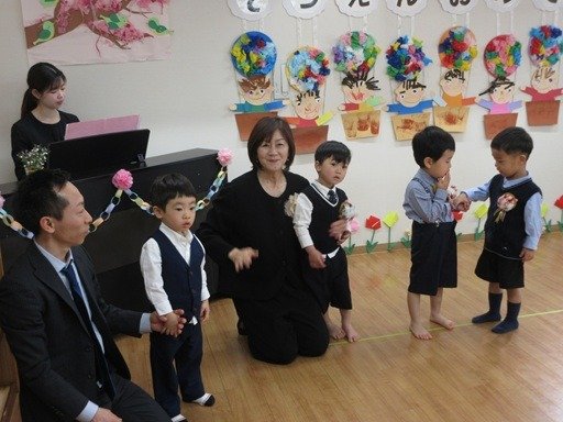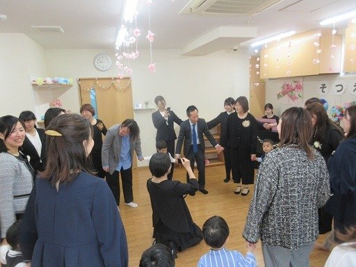 もう1曲はみんなで手を繋いで”みんなともだち”を歌います。卒園しても、小学校にいっても・・・大人になってもずっと友達。