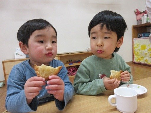 自分で作ったおやつを「めっちゃおいしい!」「yummy!!」と言いながらサクサク食べていましたよ。おいしかったね。