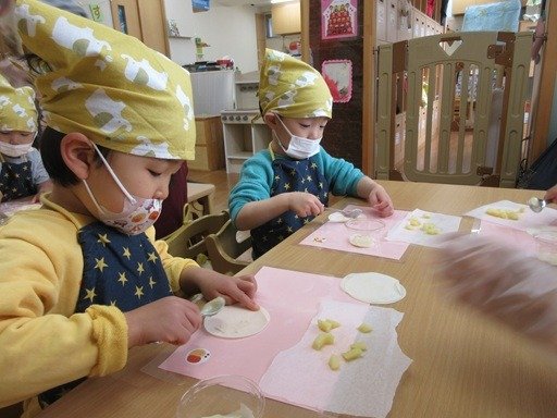 くま組さんはクッキングでアップルパイを作りましたよ。