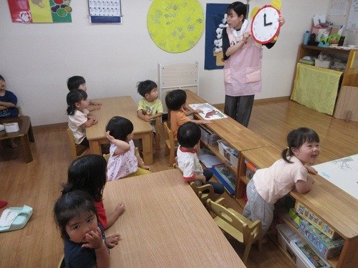あきまつりは”ぐりとぐら”が公園に遠足にでかけて体操をしたり、見つけたおみこしをかついだり、おやつタイムをしたり。そんな流れを教えてくれる大切な時計さん。数日前から子どもたちとあきまつりを楽しみに過ごしていました。