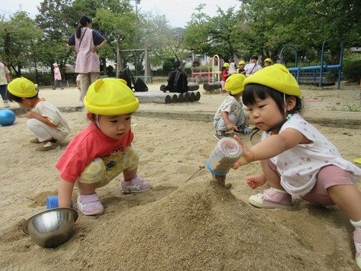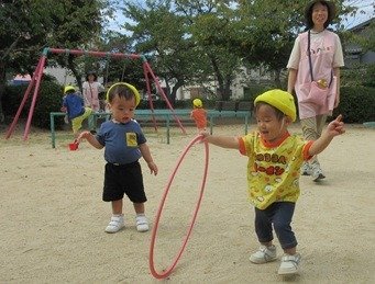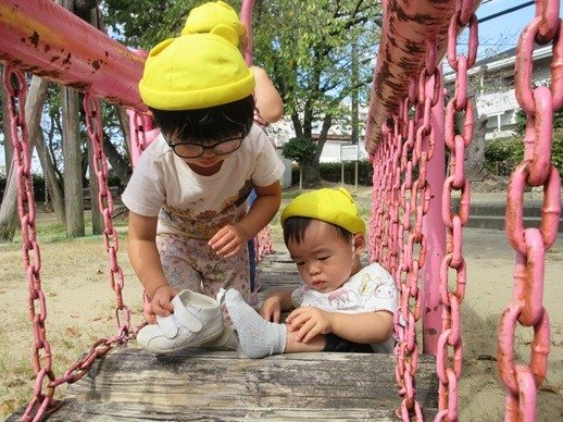 10月に入り、公園で遊ぶのにはちょうどよい季節になりました。公園につくとまずはお約束。