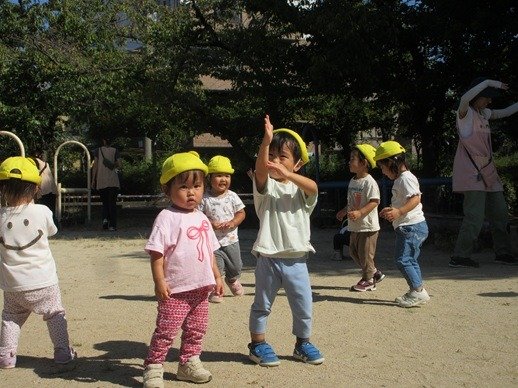 かわいい、かわいい!上手に体操をしていて、この様子を保護者の方にも見せてあげたい欲が高まりました。