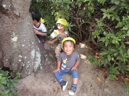 秘密基地みたいな木の間は、子どもたちにとってもワクワクする場所のようです。