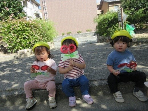 お空を見たり、葉っぱを見たり、お友達のお顔を見たり。覗き込むといつもの世界に色がついてとっても不思議なとんぼのめがね。大好きなアイテム。いつもの公園も違って見えたかな?
