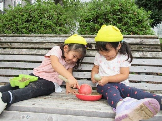 いいもの探しもできるしね。大きな石や小さな石を、ポケットいっぱいにつめ込んで帰ってきたお友達がいて、「ママがお迎えに来たら見せてあげるの」と、嬉しそうにロッカーに並べていました。「かわいいなぁ、この姿をママに見せてあげたいな♪」と感じる瞬間です。離れていても、子どもたちはパパやママのことを想っていて、なんだかほっこりさせてもらっています。