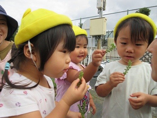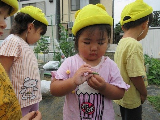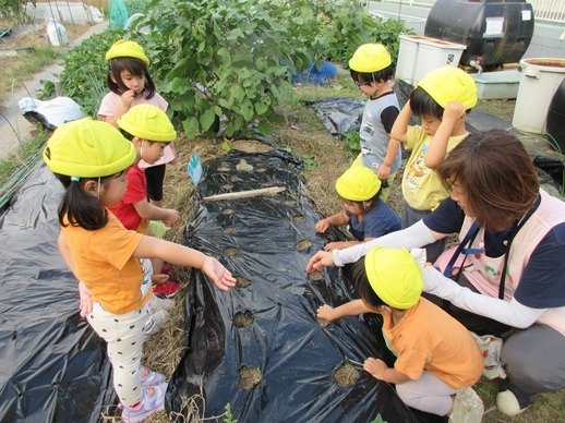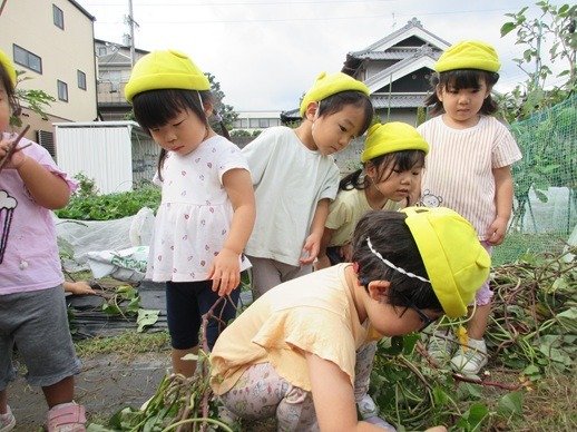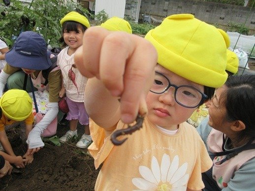 種まきをした大根の小さな芽は、バッタさんがむしゃむしゃ食べちゃったみたいで「ハートの葉っぱがないね」と教えてくれました。子どもたちは本当にいろんなことによく気がつきますね。