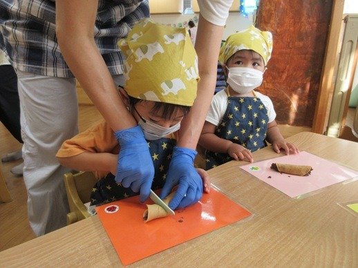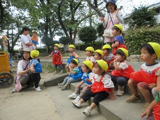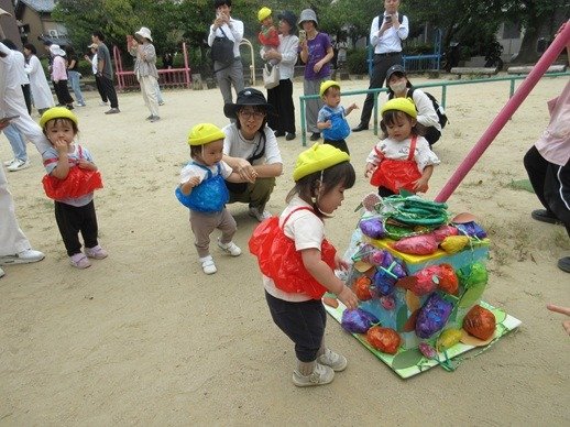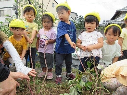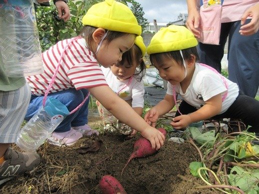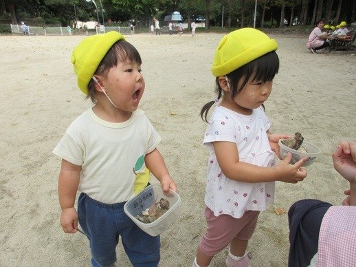 公園で待っていたひよこ組さんは、大きなお芋をみて不思議そうでしたよ。