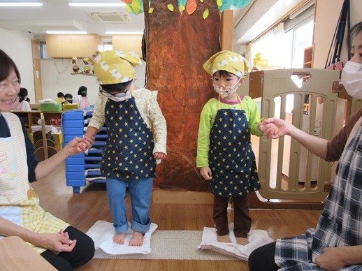 ある程度まとまったら、足でしっかりフミフミ。ぐにょっとした感触がおもしろいね!