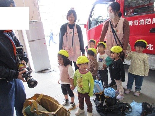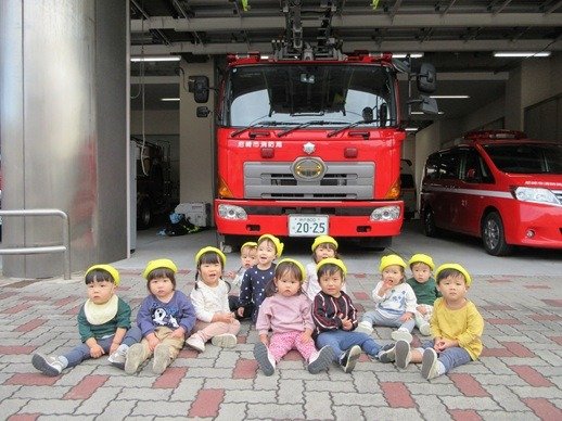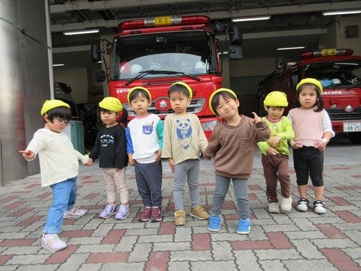 さて、今日は消防署見学にも行くんです。エプロンをはずして、消防署に向かう準備をしました。消防車見れるかな?と、朝からソワソワしていた2つ目のお楽しみです。