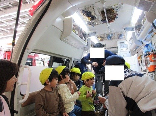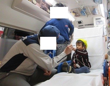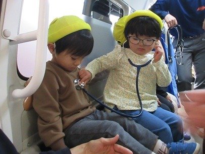 「これはなぁに?」「これはどうして使うの?」子どもたちの質問に、丁寧に答えてくれる消防士さんと救命救急士さんたちのおかげで、初めて見たものや知ったことがたくさんありました。