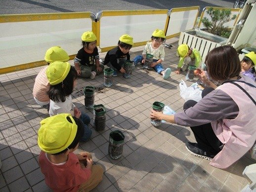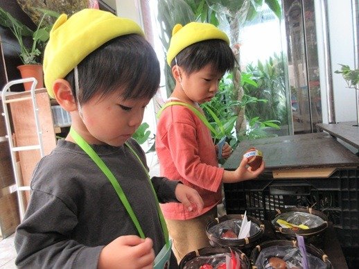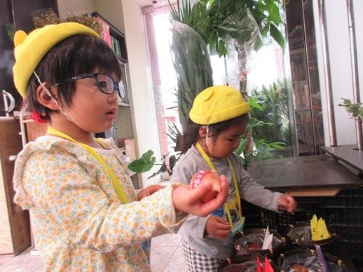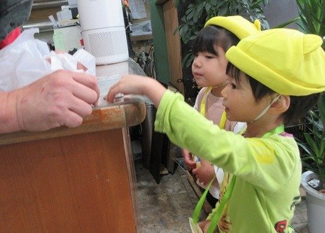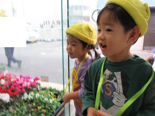 くま組さんはチューリップの球根を買いに、花屋さんに行きました。いつもお世話になっている、駅の北側にある花屋さんです。お財布にお金を入れて、好きな色を選んでそれぞれ1つずつ買いました。野菜の種と違って大きくてふしぎ。「きゅうこん」覚えましたよ。
