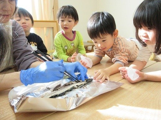 にがみのあるところは「大人になったらこういうところもおいしく食べれるようになるかもね」と教えてもらって、大人になって食べてみると張り切っていましたよ。「それなんだったっけ?」と「骨」にも興味がわいたようです。
