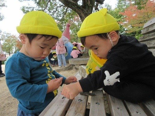 公園でも「これな~んだ」を見つけて遊ぶのが上手な子どもたち。繰り返し試しながら大きく育ってほしいです。