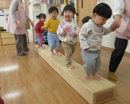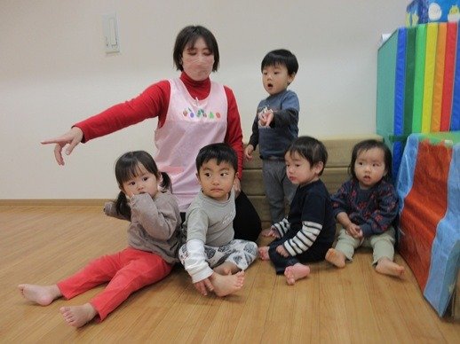 「あっ!〇〇だー」先生の声で集まったり、一本橋を渡ったり、走ったり、とまったりと、0歳児クラスのお友達も、先生の言葉をしっかり理解してリトミックを楽しんでいます。当日は保護者の方と一緒に楽しみたいなーと思っていますので、動きやすい服装で来てくださいね。