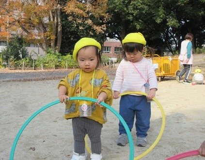 お外も寒くなってきましたが、みんな元気いっぱいです。木の実拾いもままごとも大好きですが、最近は、フープやロープで電車ごっこが楽しそうです。来週もみんな元気いっぱい遊ぼうね!