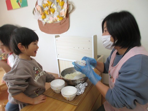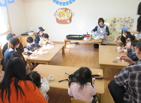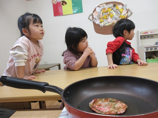調理の先生がね「お昼寝から起きたら焼くから、スッキリ起きてね」なんて話していたんです。みんなびっくりするくらい、スッキリ起きてくれましたよ。楽しみにしていたんだね。