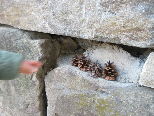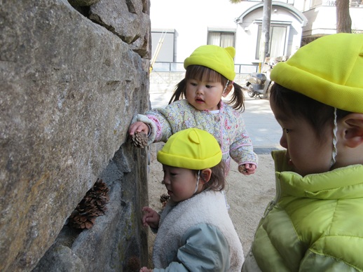 小さなおててで並べたかと思うと、愛おしさも増しますね。誰かの遊んだアトは、物語があるようで惹かれます。子どもたちの遊んだアトはとくに。松ぼっくりも楽しそうに見えますね。