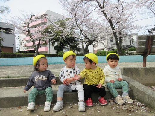 一つ大きくなって、くま組さんになったお友だち。一つ大きくなってうさぎ組さんになったお友だち。進級おめでとう!!桜が満開でみんなのことをお祝いしてくれているね。