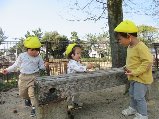 「せんせ~みてて」「せんせ~もいっしょにしよ」「ばぁ!!」一つ大きくなってはりきってる子どもたちの気持ちを支えつつ、グンと伸ばしてあげたいです。