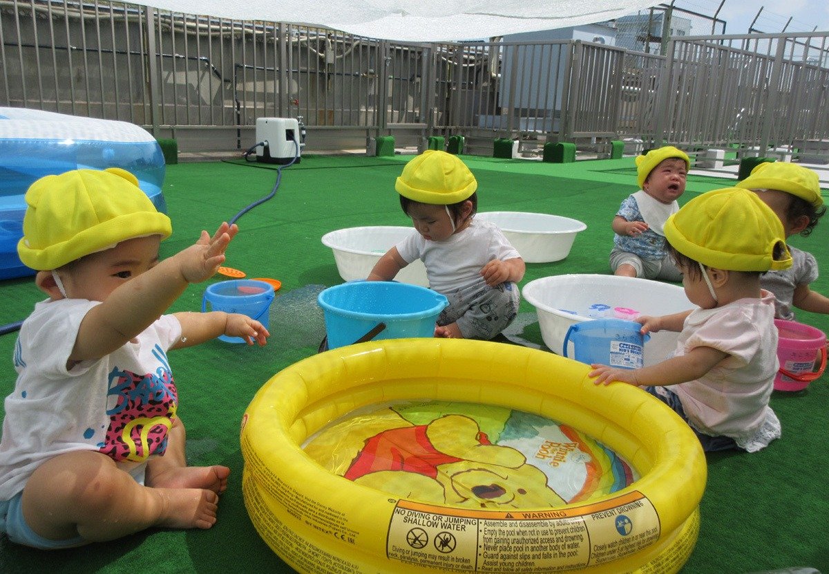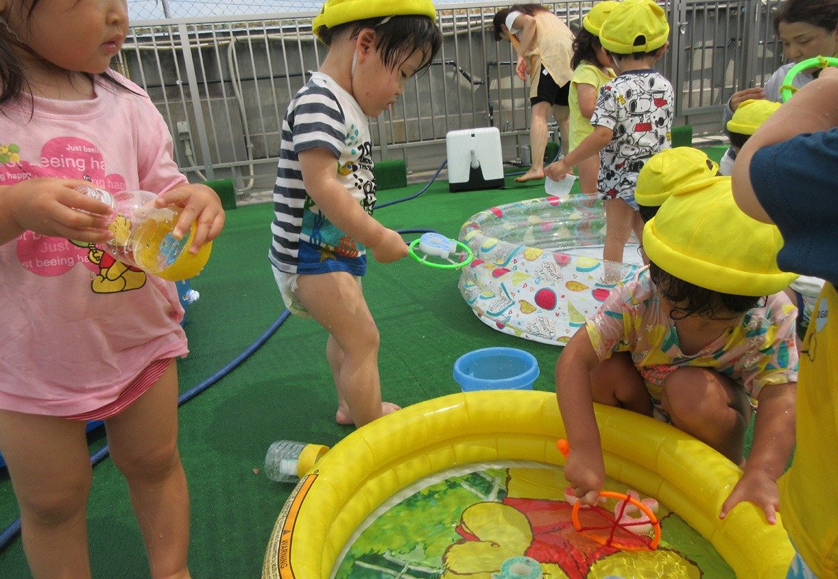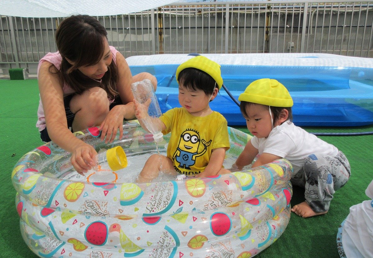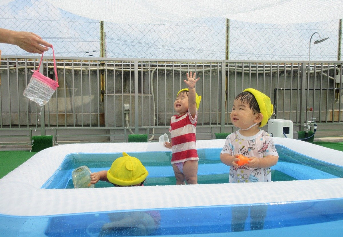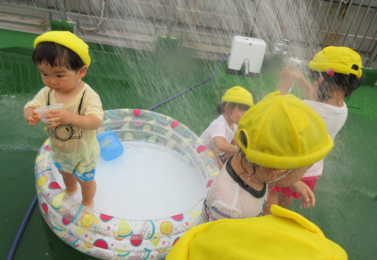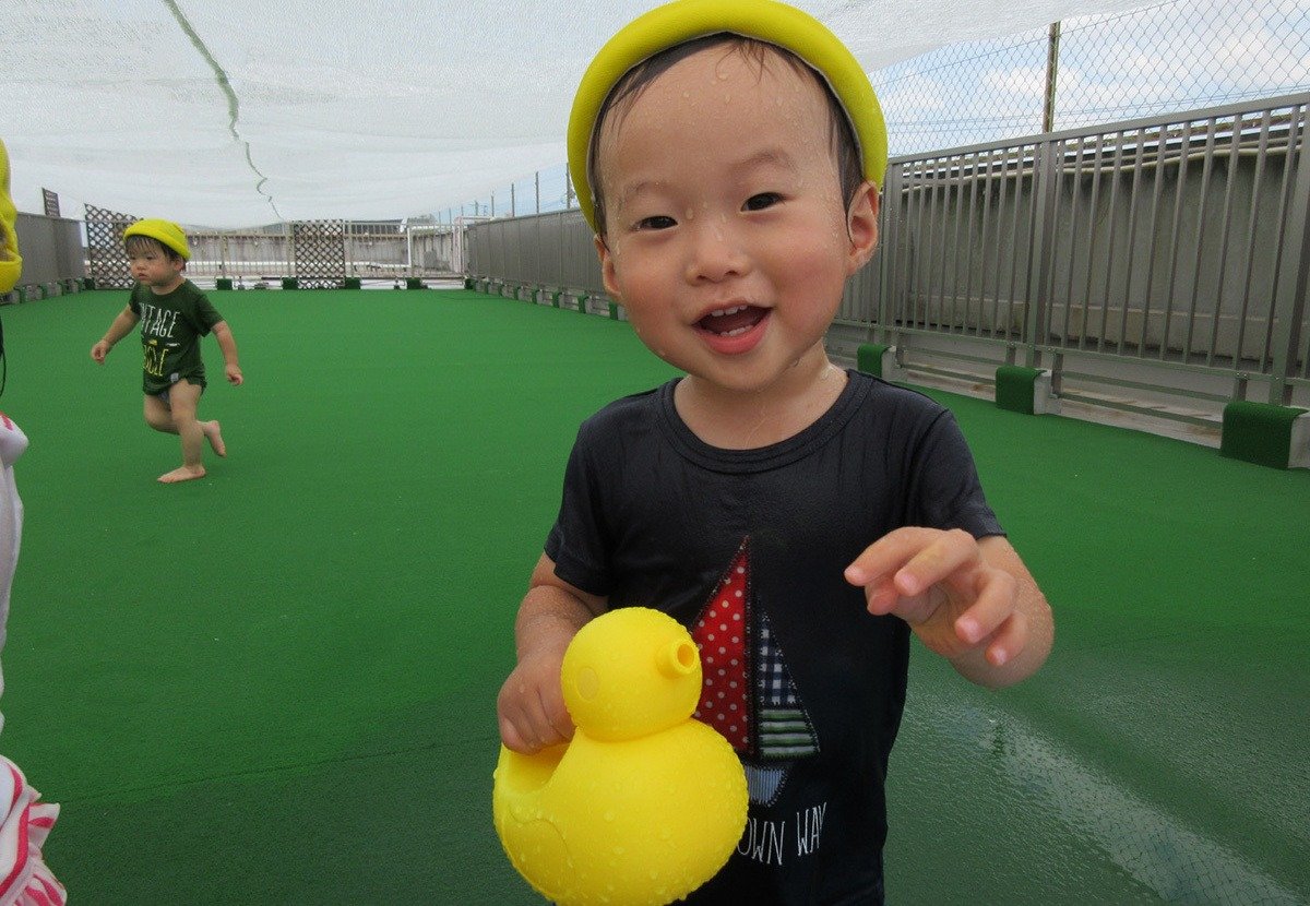 毎日の楽しみは、屋上園庭でのプール遊び・水遊び💦