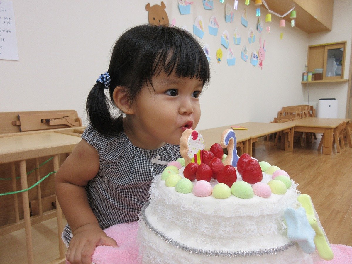 「フーッ!」と上手にロウソクを消せました♪