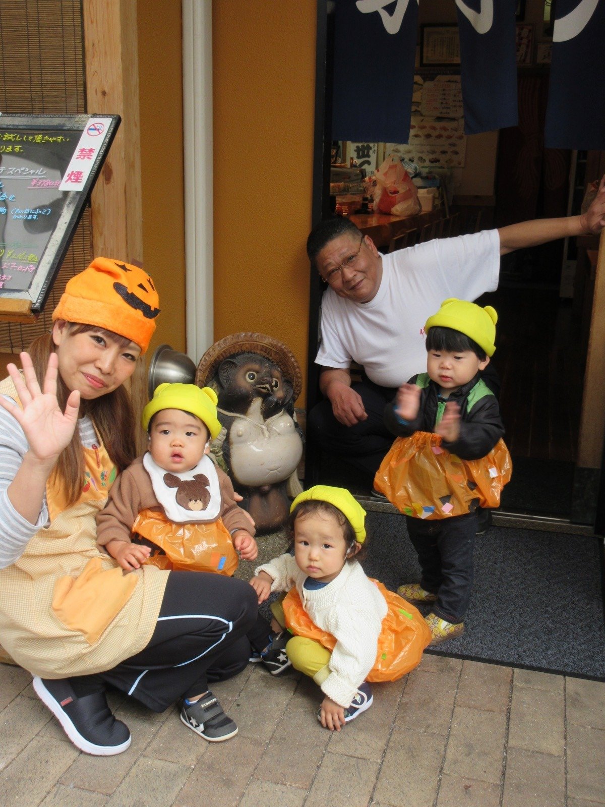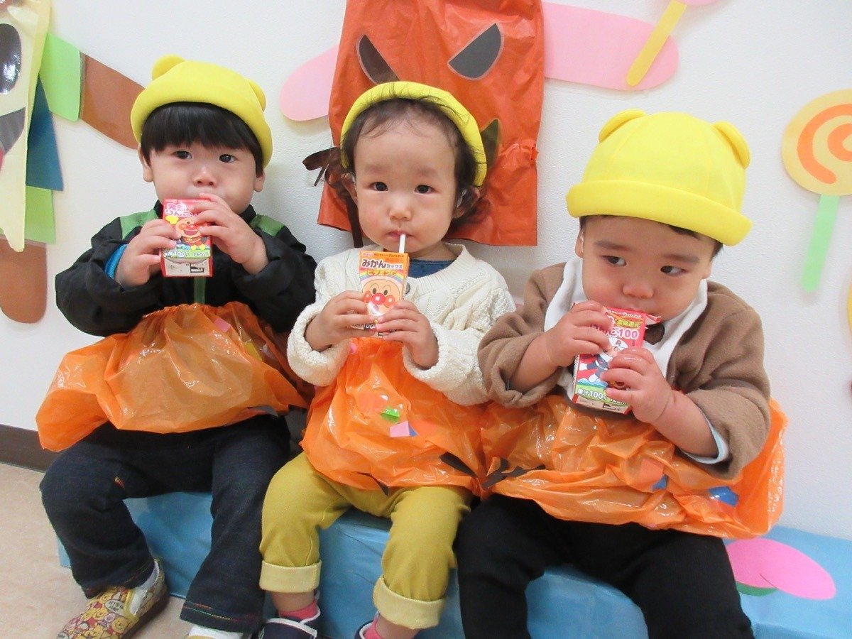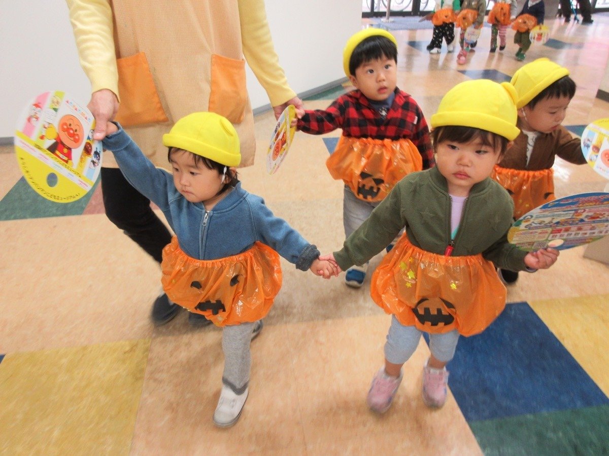 「ハッピーハロウィン♪」 保育士の言葉に続いて 「ピー♪」「ウィン♪」と子ども達…