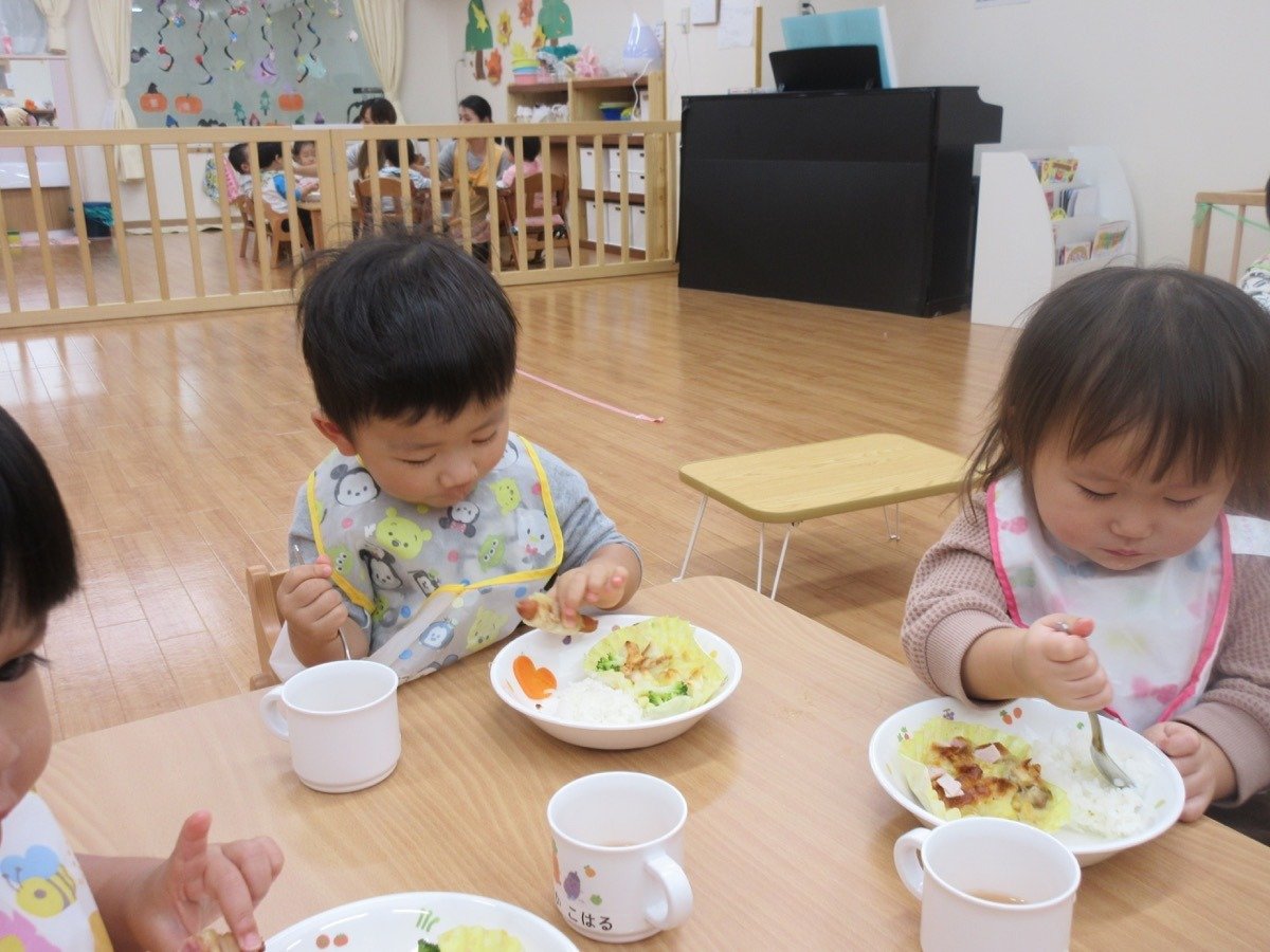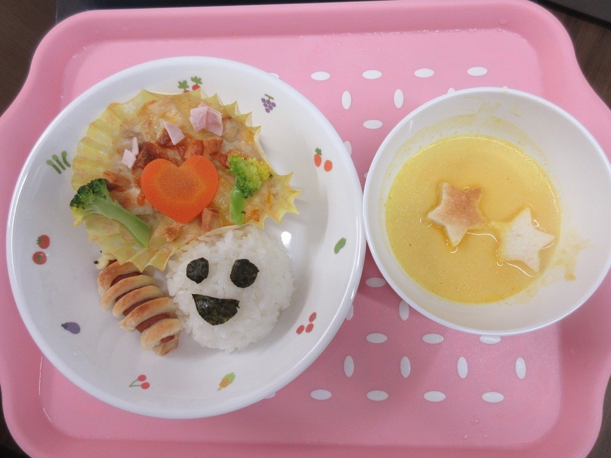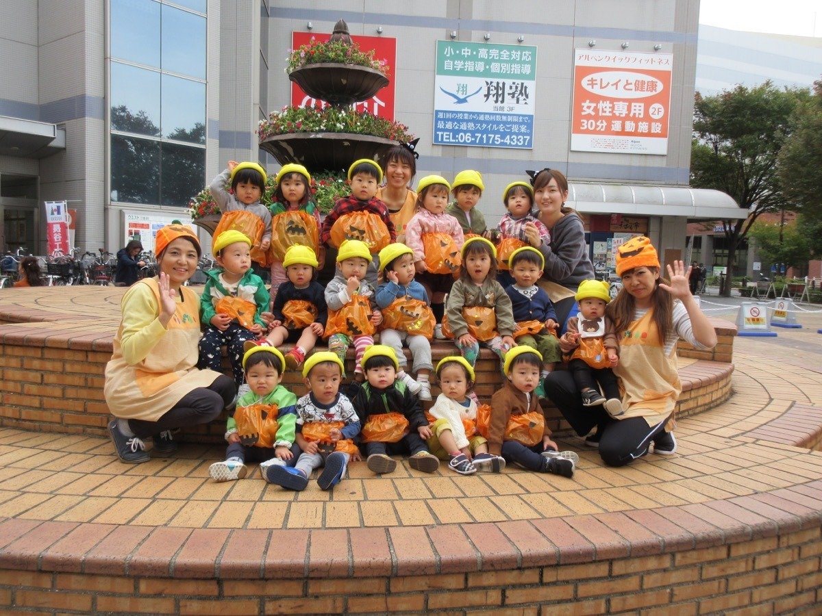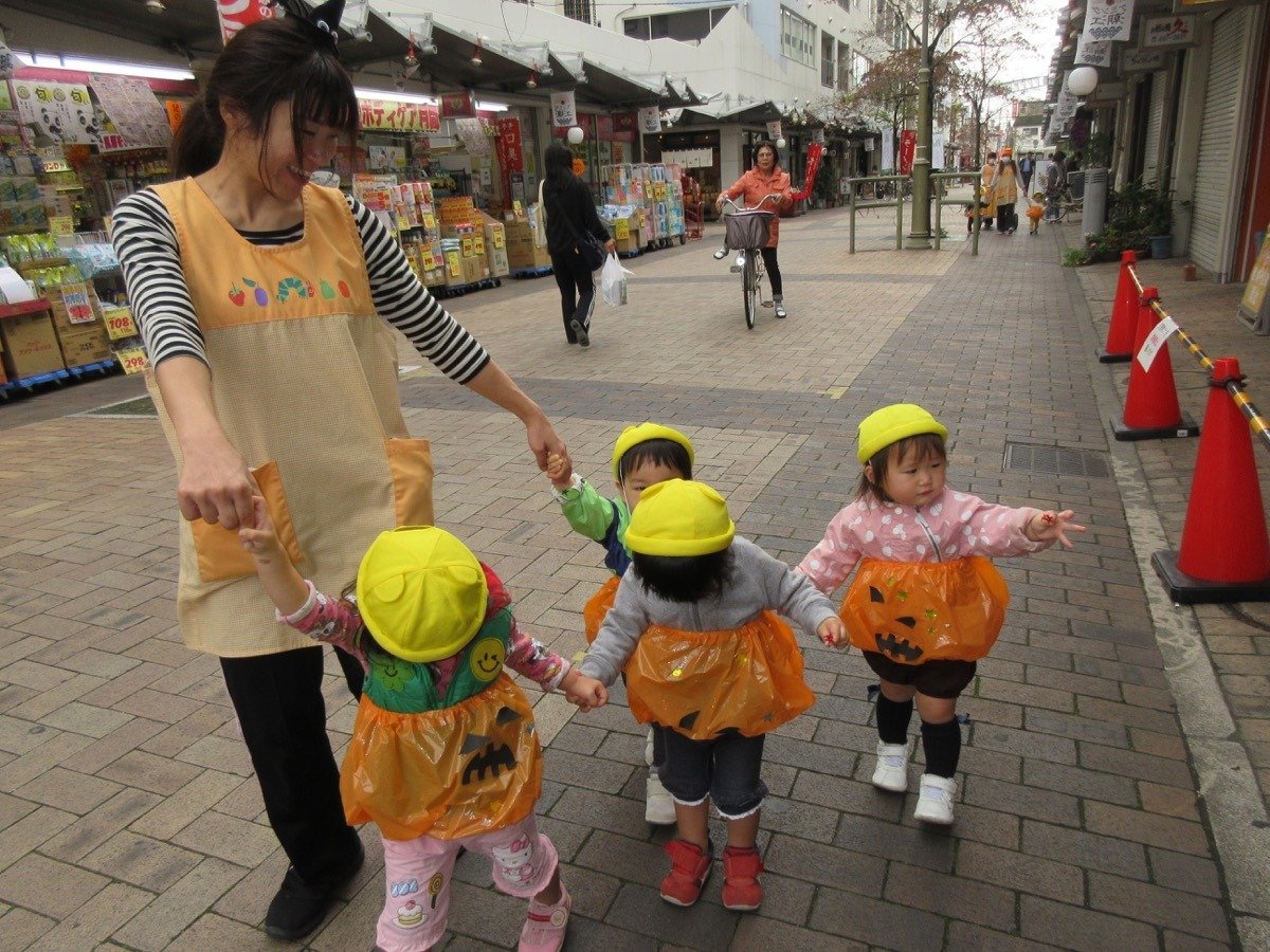 「ハッピーハロウィン♪」 保育士の言葉に続いて 「ピー♪」「ウィン♪」と子ども達…