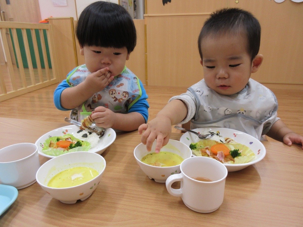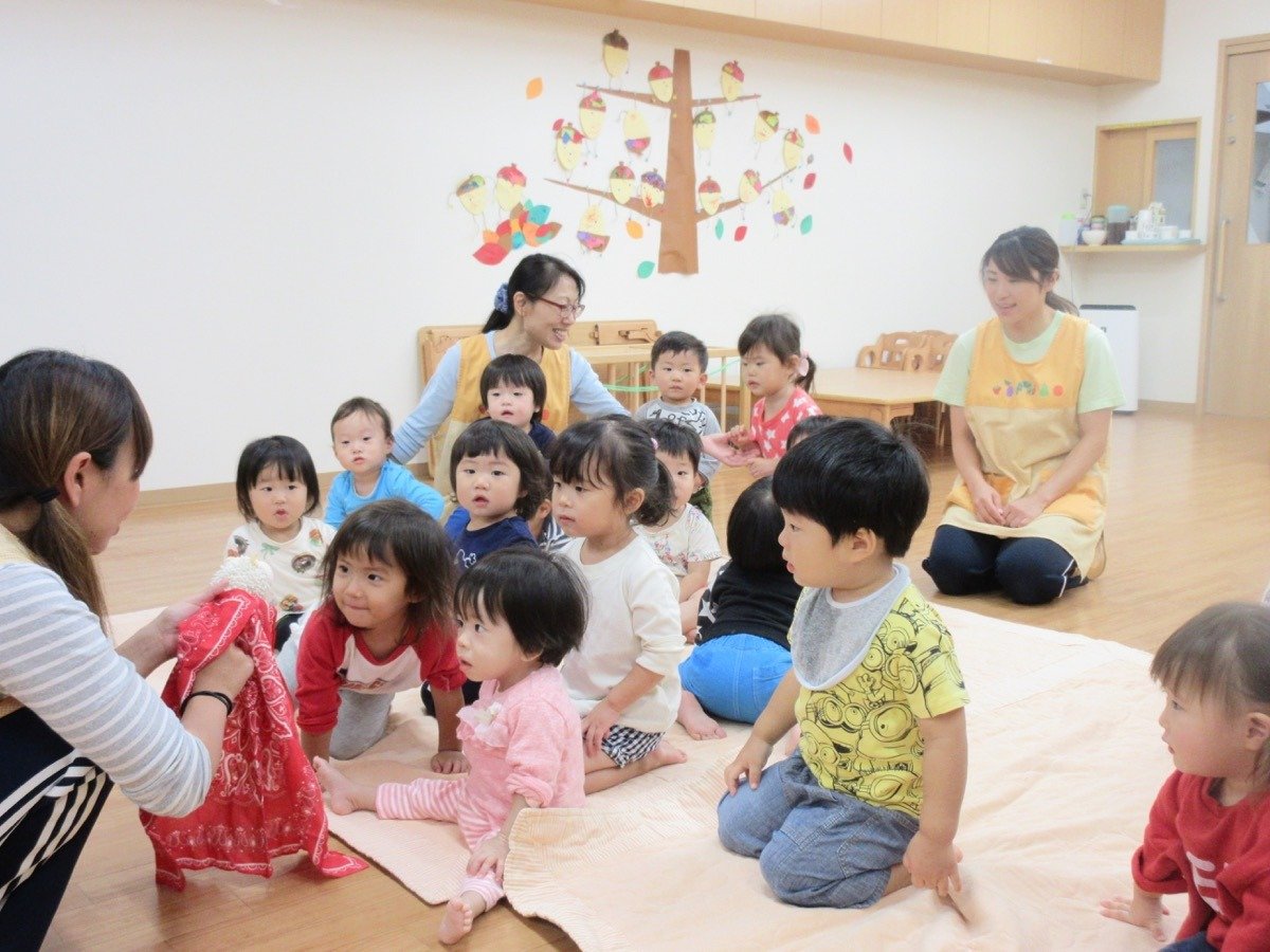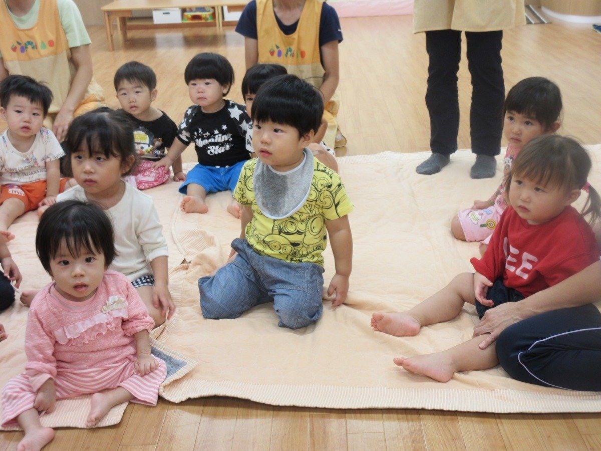 中には、ちょっぴり怖くて保育士の膝に座りにくる子もいましたが…(笑)