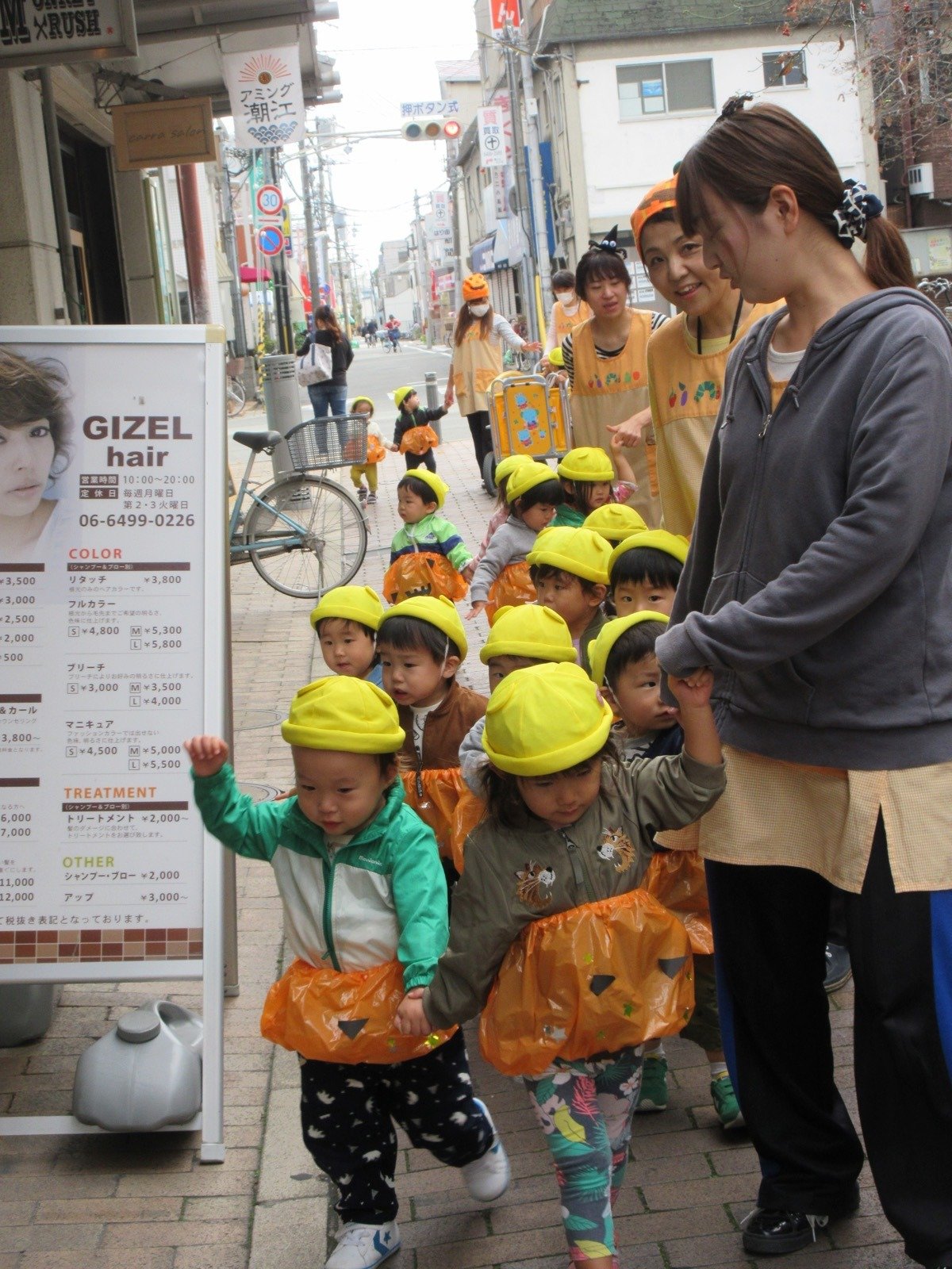 パレードしていると、「かわいいね~」「かぼちゃだね~」と、地域の皆様に
