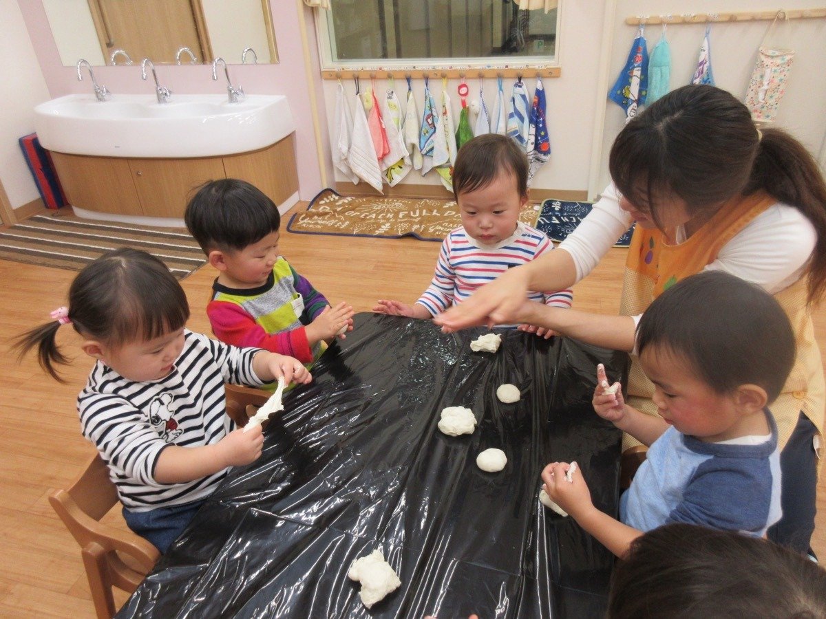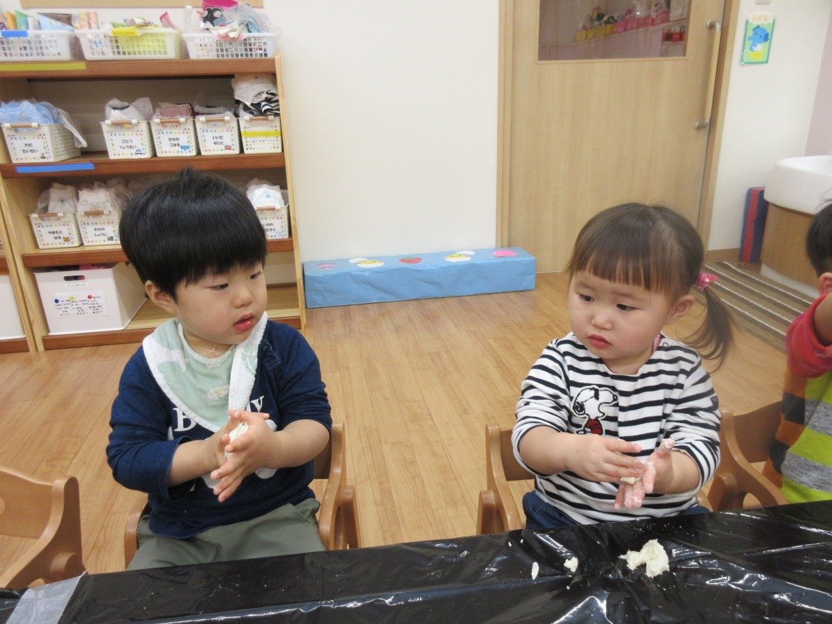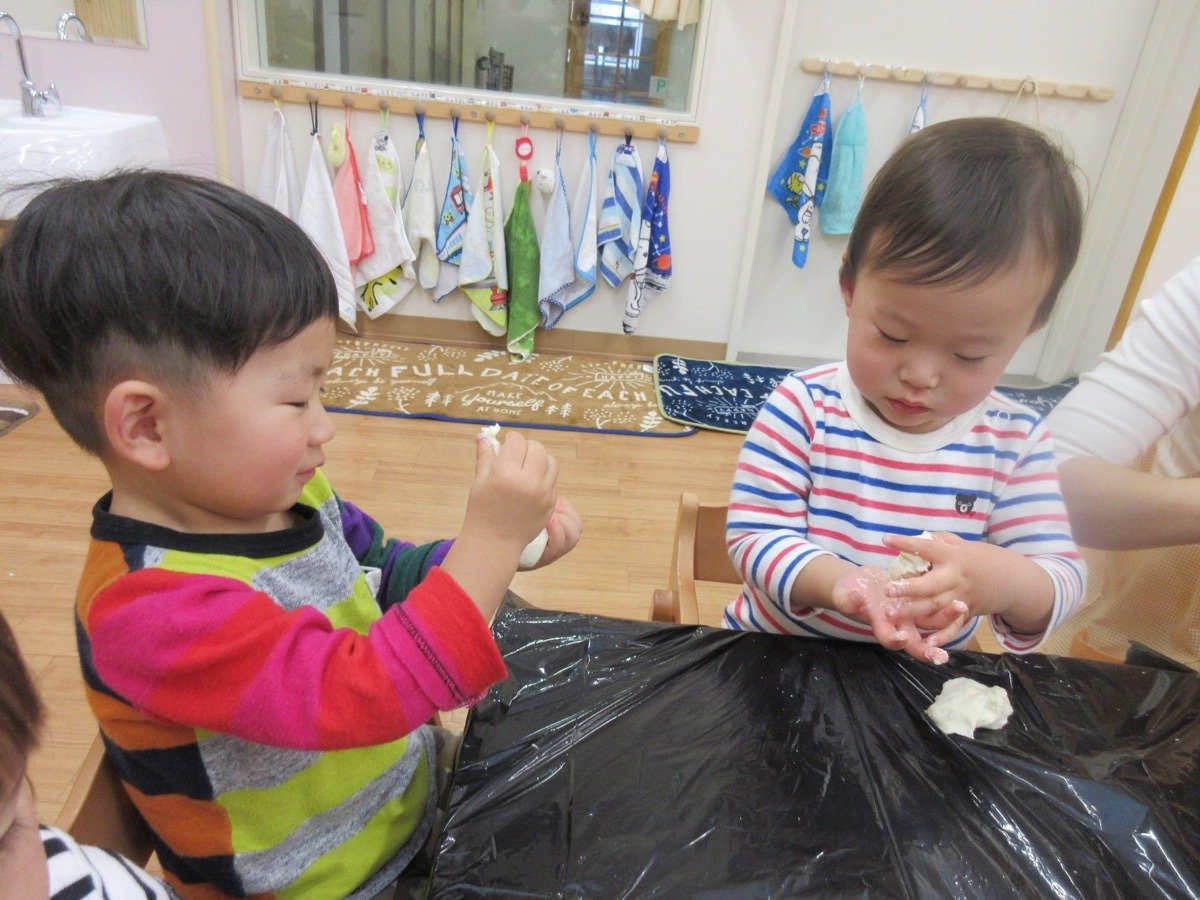 小麦粉粘土のお餅は、ぺたっと、とってもいい気持ち😊