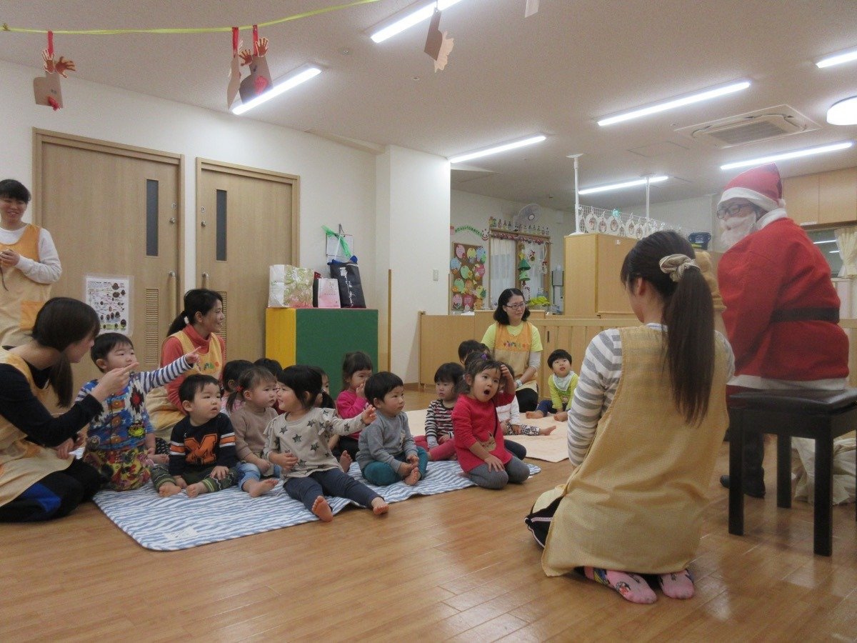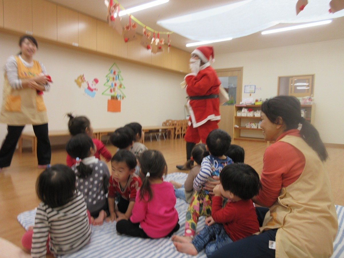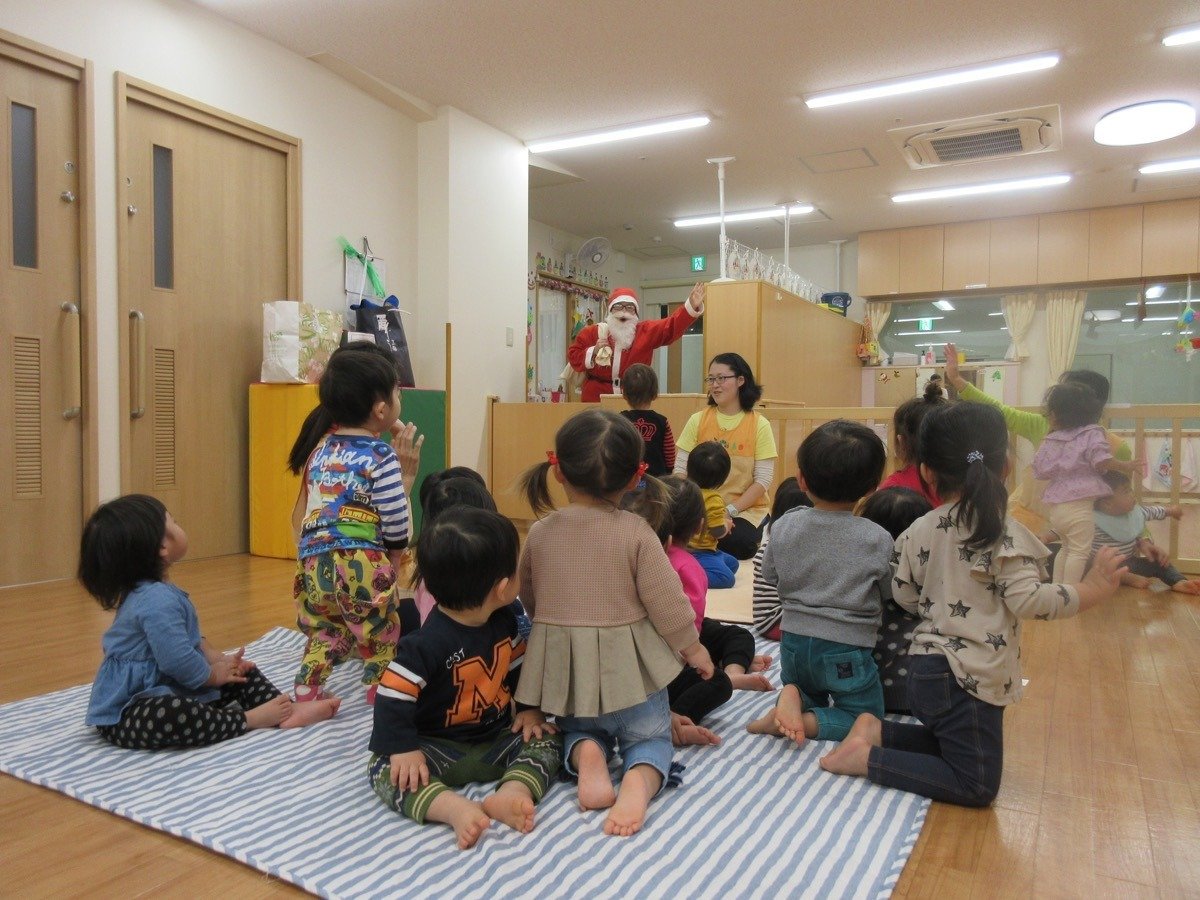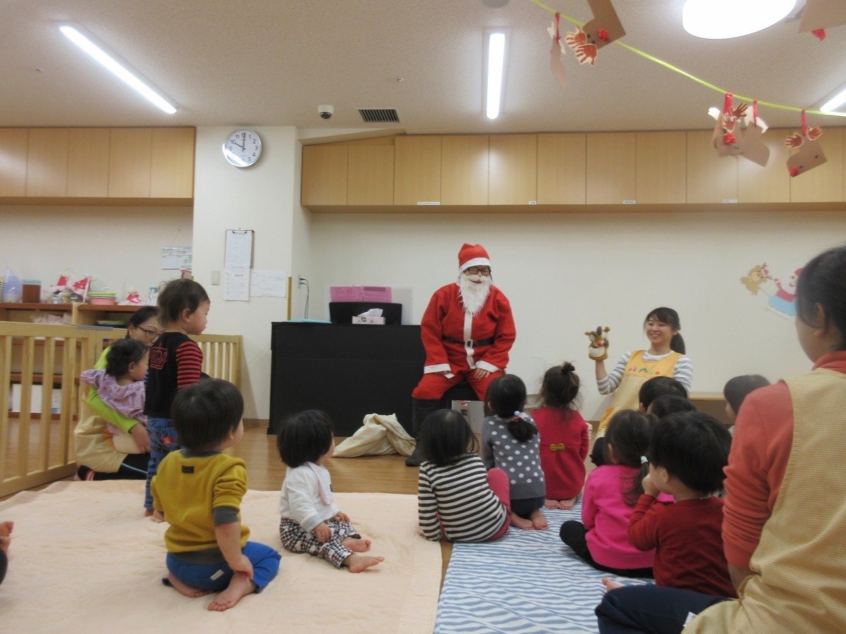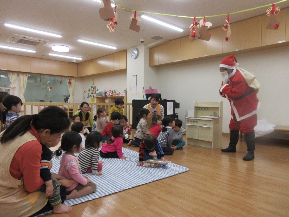 子ども達の可愛い歌声に導かれて、きらきら保育園にサンタさんがやって来ました!